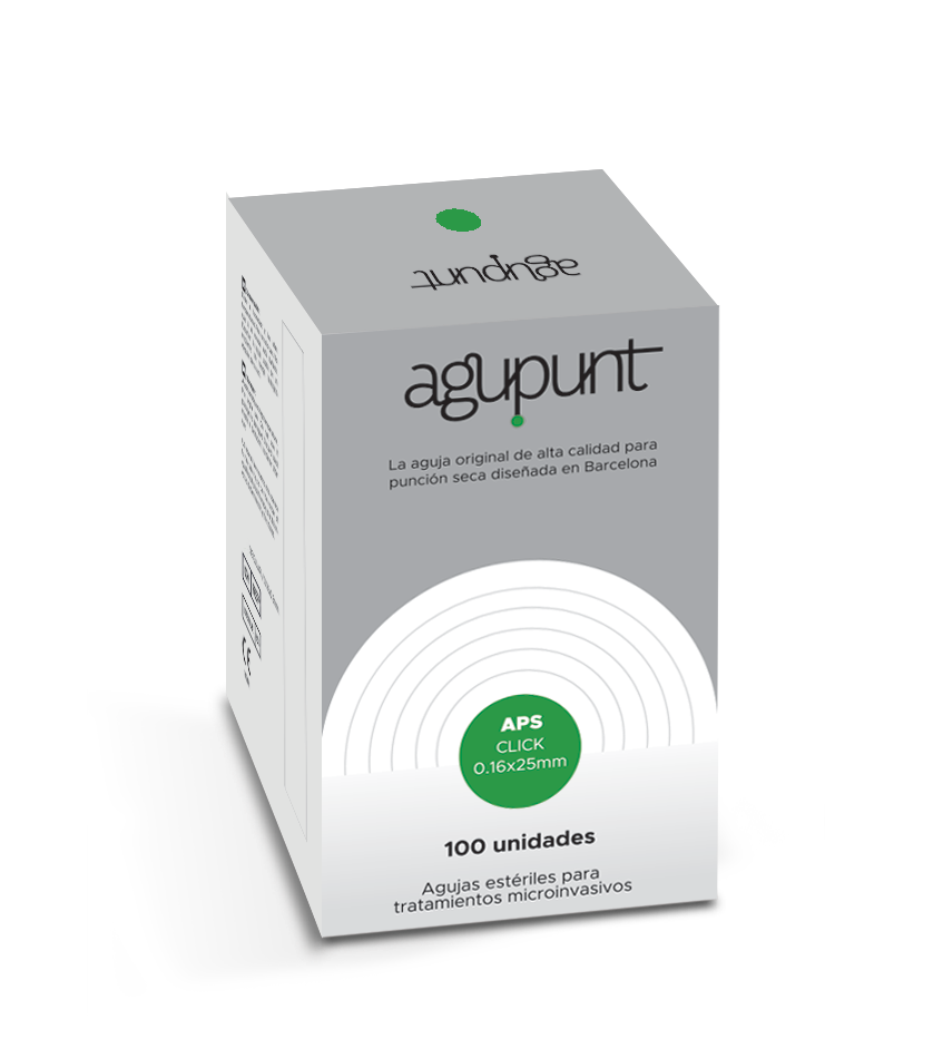 Agujas de todos los tamaños, con un sistema de sujeción patentado por AGUPUNT. Este sistema consta de dos muescas que sujetan la aguja sin necesidad de generar ningún residuo ni utilizar productos químicos, haciéndola más sostenible. Por otro lado, gracias a este sistema, su manejabilidad es mucho más ágil, pudiendo hacer la técnica de inserción fácilmente con una mano sin perder en ningún momento la palpación de la zona a tratar. También permite la recolocación de la aguja en el tubo guía, y su posterior sujeción, para poder volver a insertarla en el mismo paciente, en caso de haber tenido algún problema en la primera inserción.